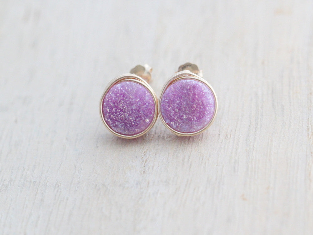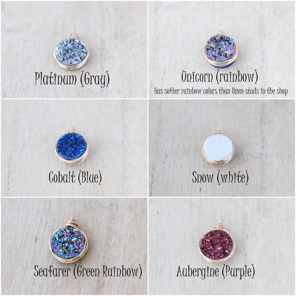 These simple studs feature gorgeous sparkling Druzy Agates with a titanium coating in an array...