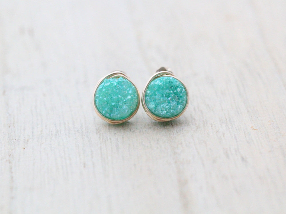 These adorable post earrings feature high quality, 8mm Druzy Quartz that have been custom cut...