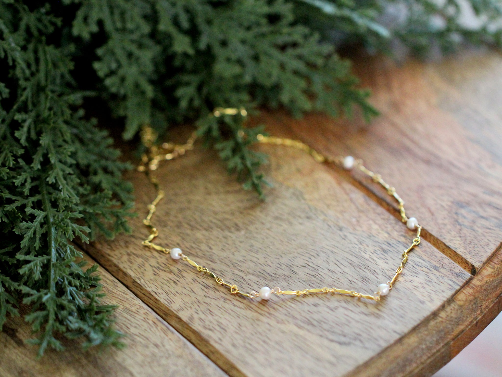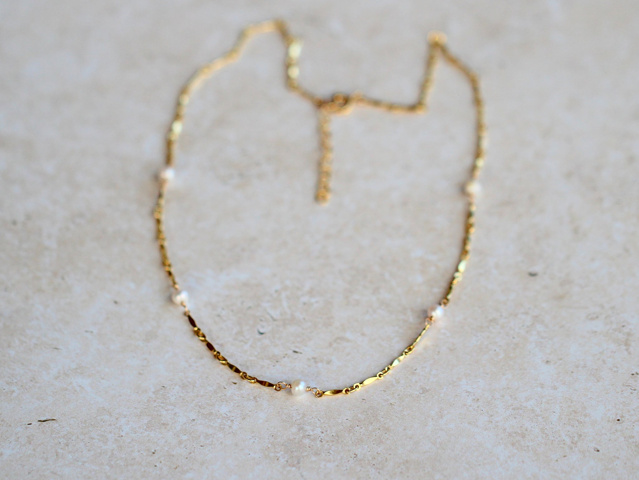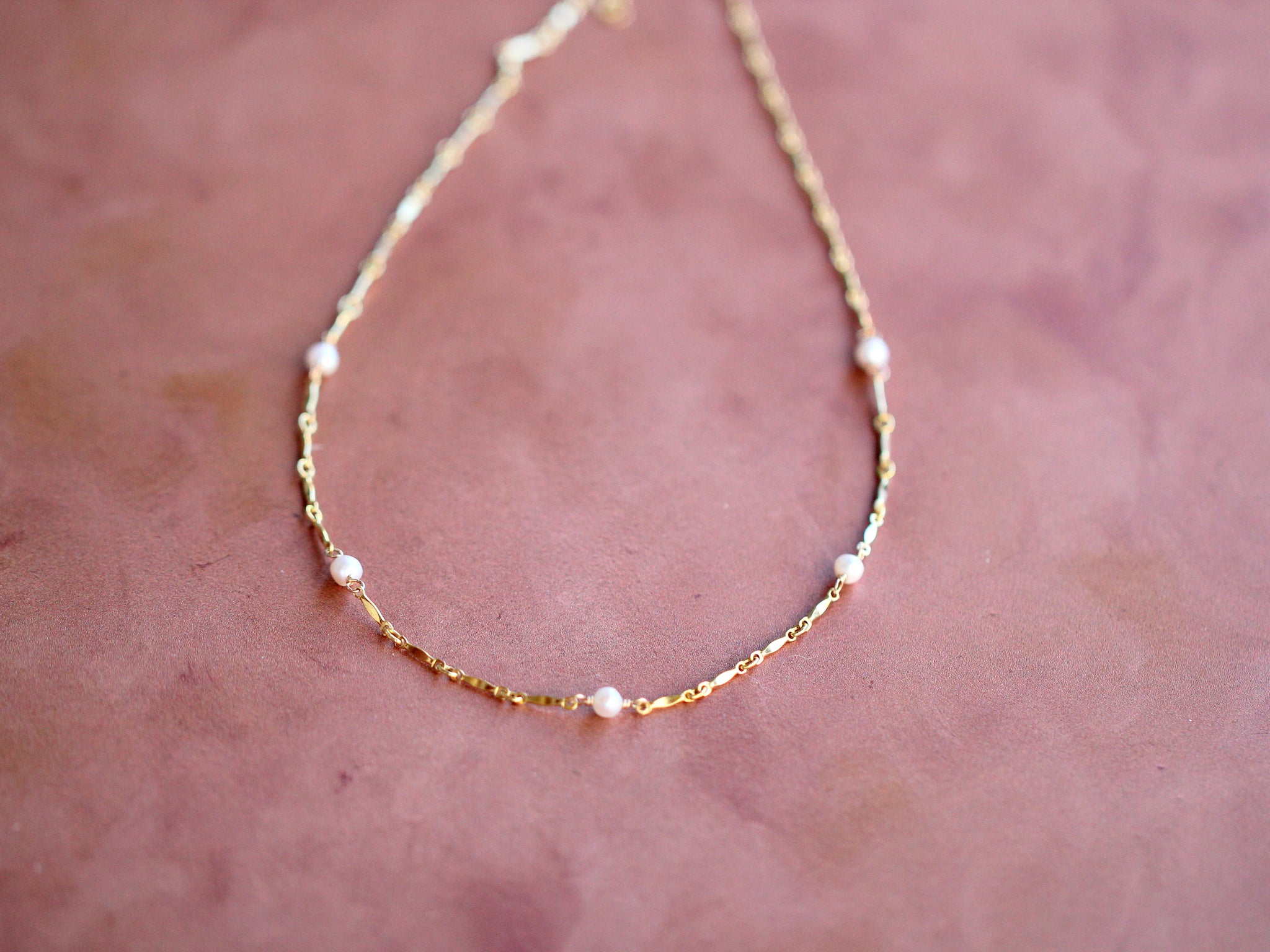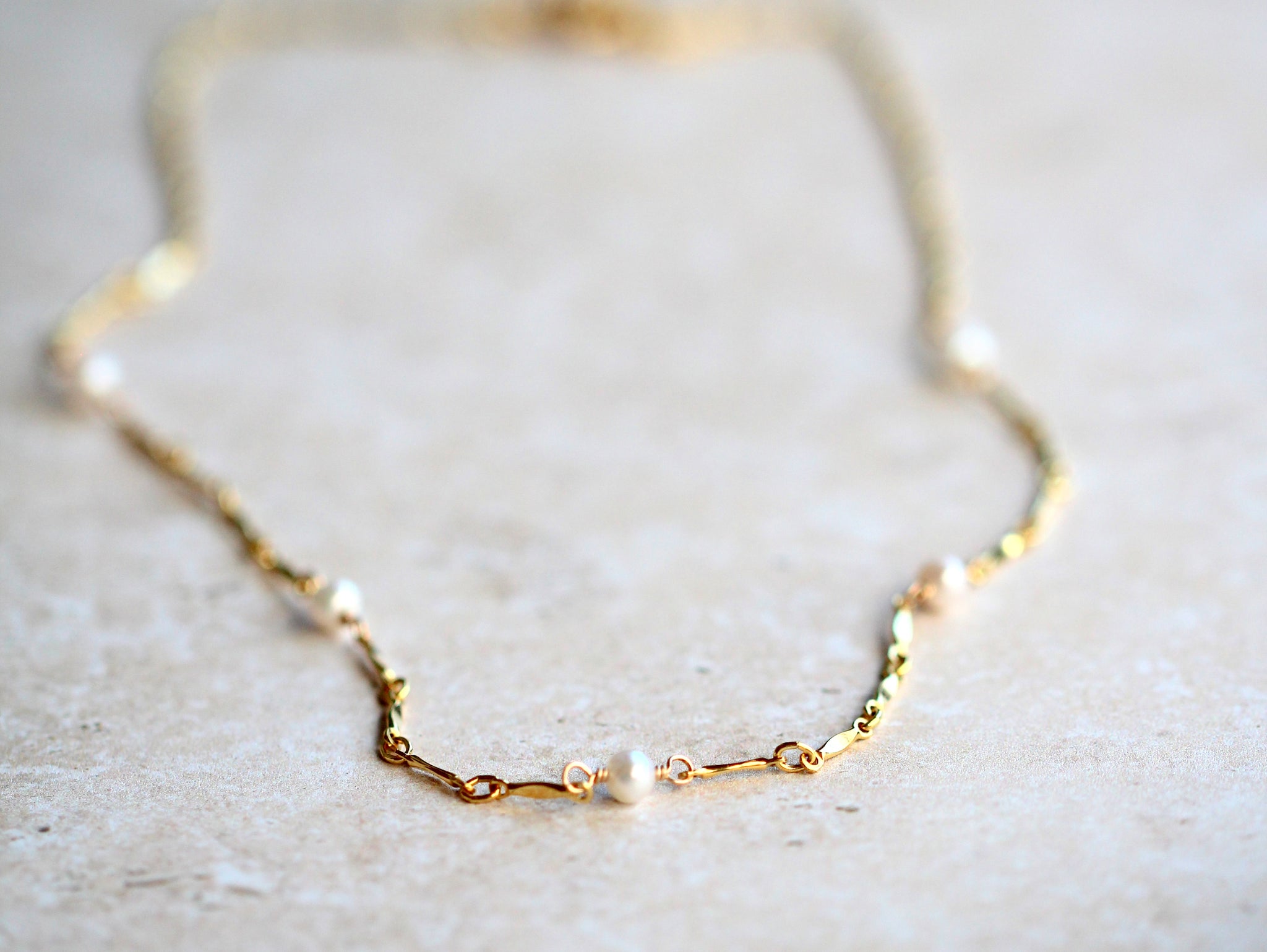 Dainty, yet sturdy and well made scalloped chain has gorgeous fresh water pearls set along...